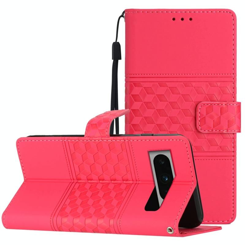 Για το Google Pixel 8 Pro Diamond Embossed Skin Feel Δερμάτινη θήκη τηλεφώνου με κορδόνι (κόκκινο)