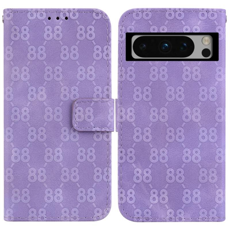 Θήκη τηλεφώνου από δέρμα με ανάγλυφο διπλό σχέδιο σε σχήμα 8 για Google Pixel 8 Pro (Μωβ)
