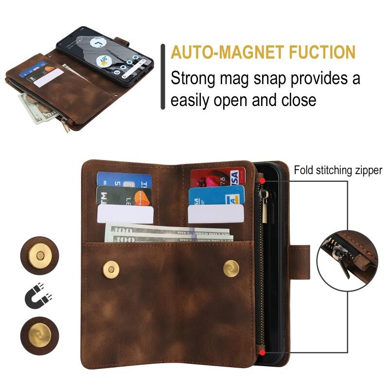 Για Google Pixel 8 Pro Dream 9-Card φερμουάρ πορτοφόλι RFID δερμάτινη θήκη τηλεφώνου με κορδόνι (καφέ)