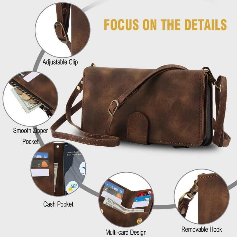 2. Λειτουργία πορτοφολιού πολλαπλών καρτών: 9 υποδοχές για κάρτες και 1 θήκη μετρητών με φερμουάρ για να αποθηκεύετε τις πιστωτικές σας κάρτες, μετρητά ή μικρά χαρτονομίσματα για τις καθημερινές σας ανάγκες.