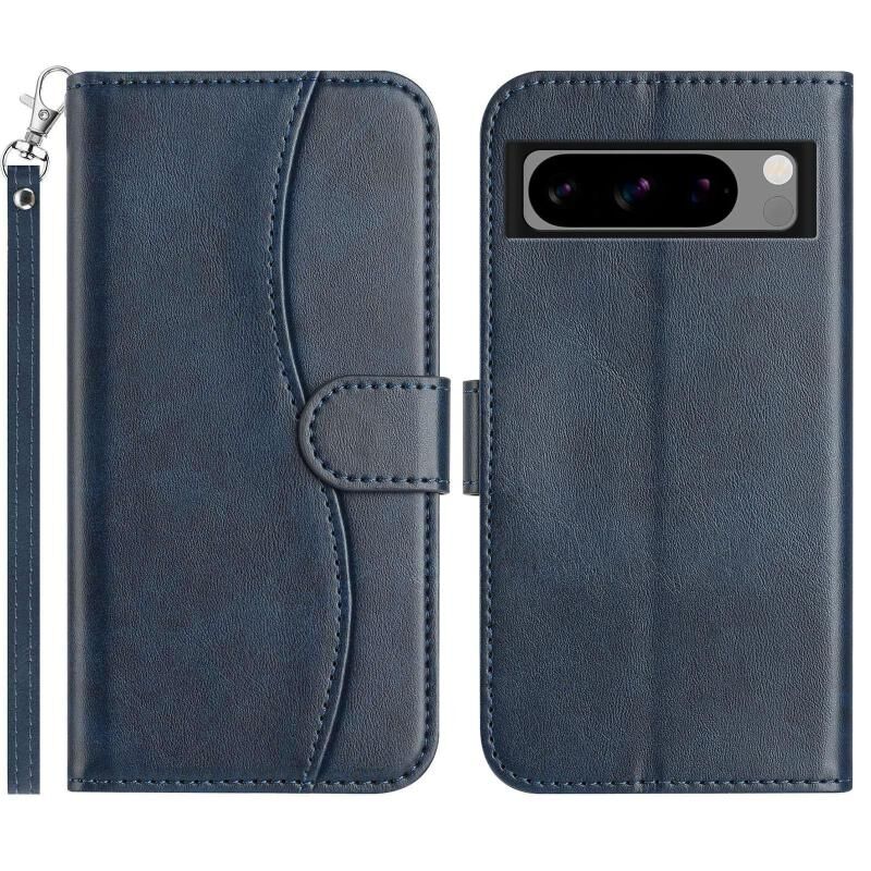 For Google Pixel 8 Pro Dual-Folded S-shape Leather Phone Case(Navy Blue)