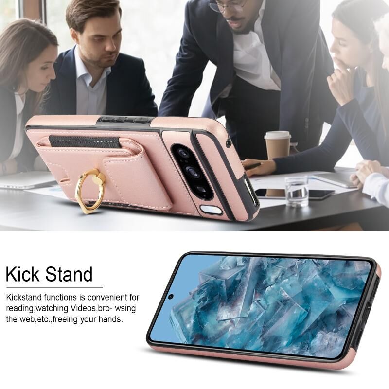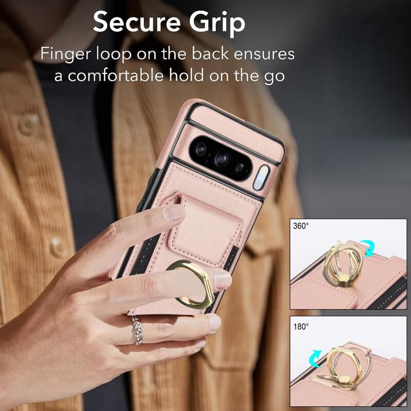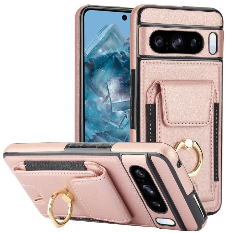 Για το Google Pixel 8 Pro Ελαστική τσάντα κάρτα δαχτυλίδι κάτοχος υπόθεση τηλεφώνου (Rose Gold)