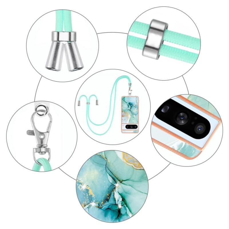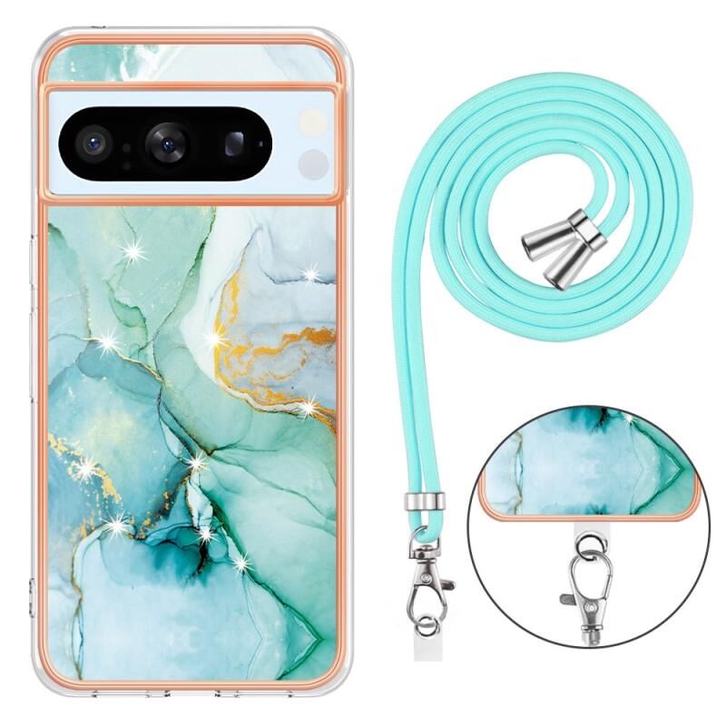 For Google Pixel 8 Pro Electroplating Marble Dual-side IMD Phone Case with Lanyard(Green 003)