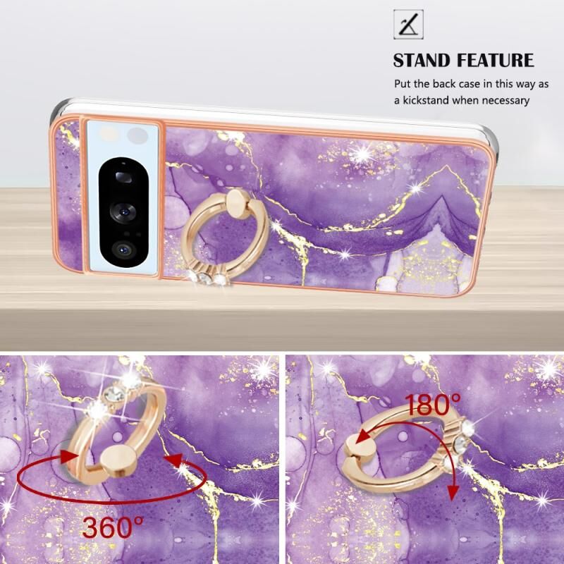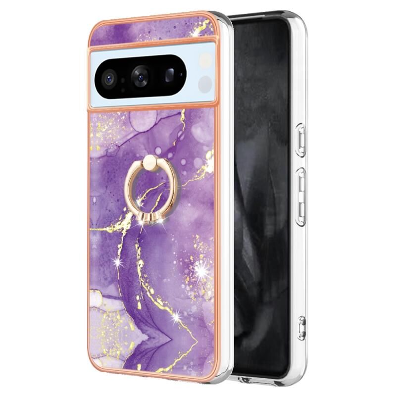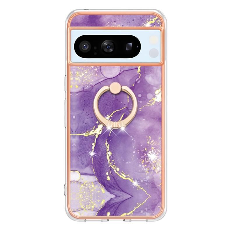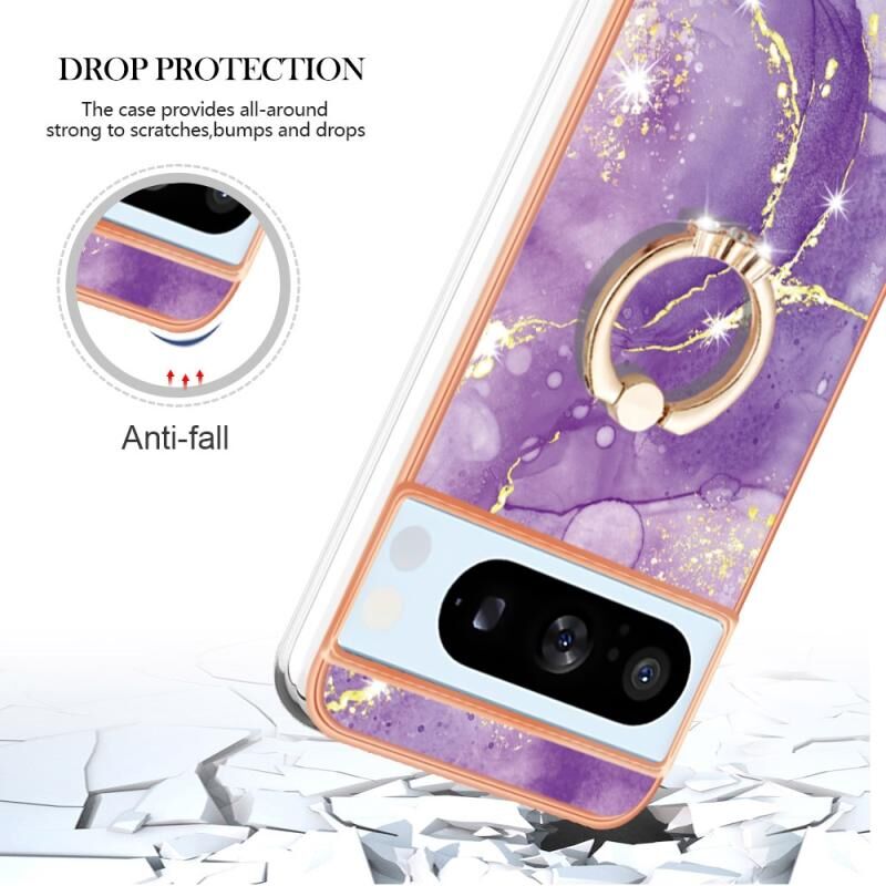 Θήκη κινητού τηλεφώνου Google Pixel 8 Pro με Ηλεκτρολυτική Επικάλυψη, σχέδιο Μάρμαρου IMD, από TPU με Δακτύλιο Στήριξης (Λευκό 006)