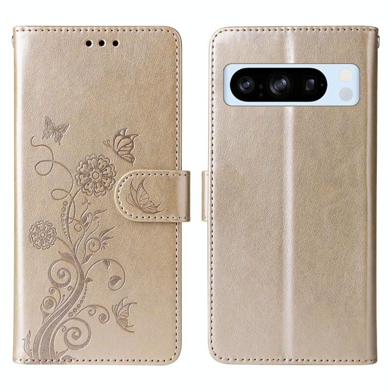 Θήκη τηλεφώνου από δέρμα με ανάγλυφα σχέδια πεταλούδας και λουλουδιών για Google Pixel 8 Pro (Μωβ)