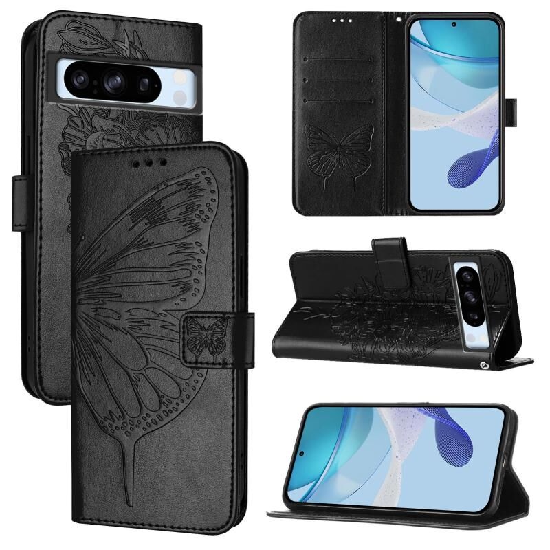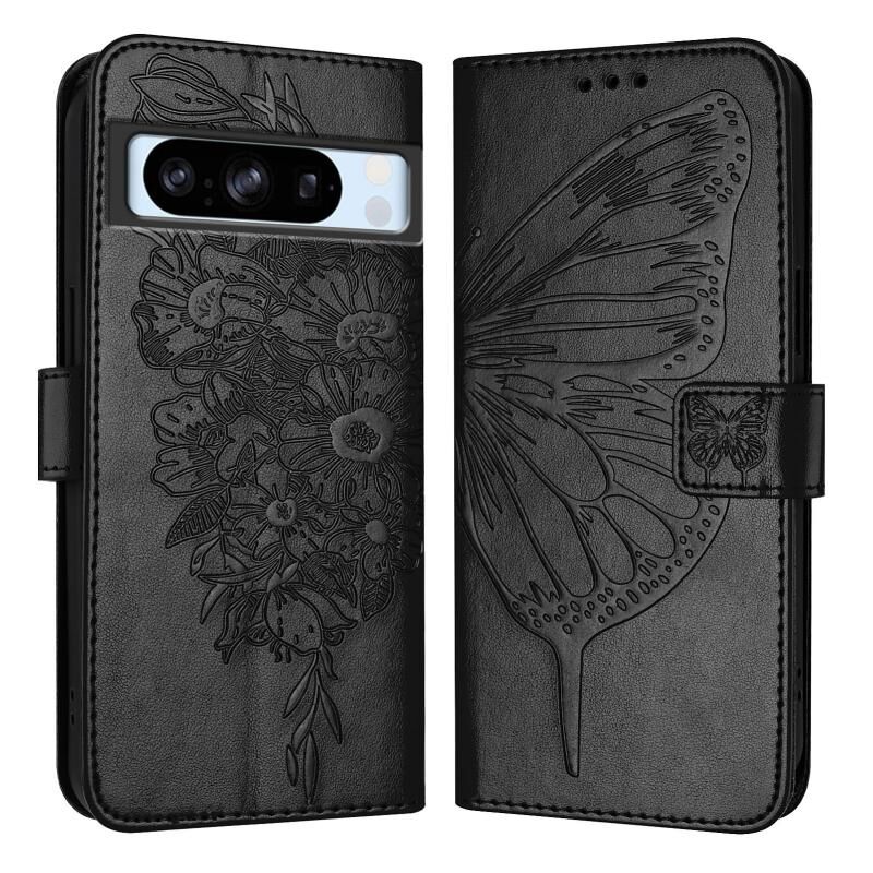 For Google Pixel 8 Pro Embossed Butterfly Leather Phone Case(Black)