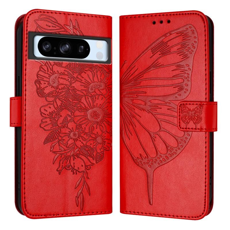 For Google Pixel 8 Pro Embossed Butterfly Leather Phone Case(Red)