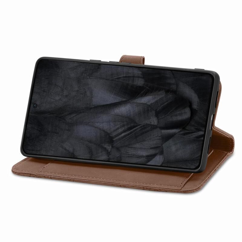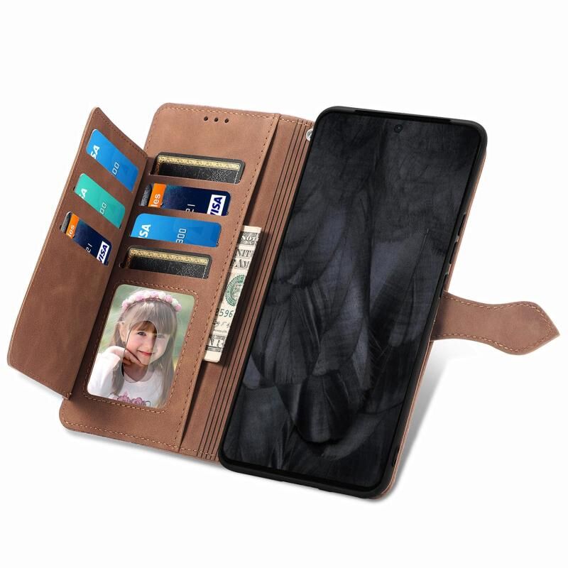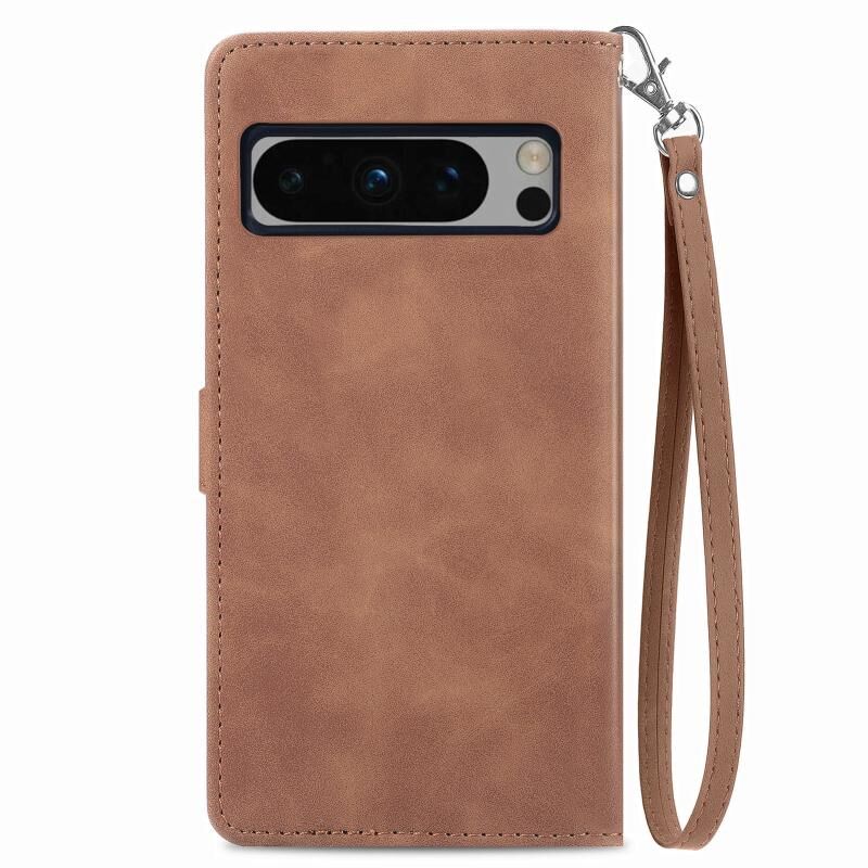 Για το Google Pixel 8 Pro ανάγλυφο λουλούδι φερμουάρ δερμάτινη θήκη τηλεφώνου (καφέ)