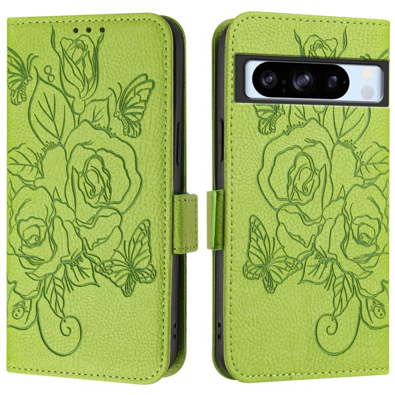 For Google Pixel 8 Pro Embossed Rose RFID Anti-theft Leather Phone Case(Green)