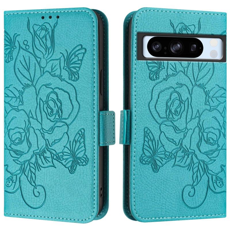For Google Pixel 8 Pro Embossed Rose RFID Anti-theft Leather Phone Case(Light Blue)
