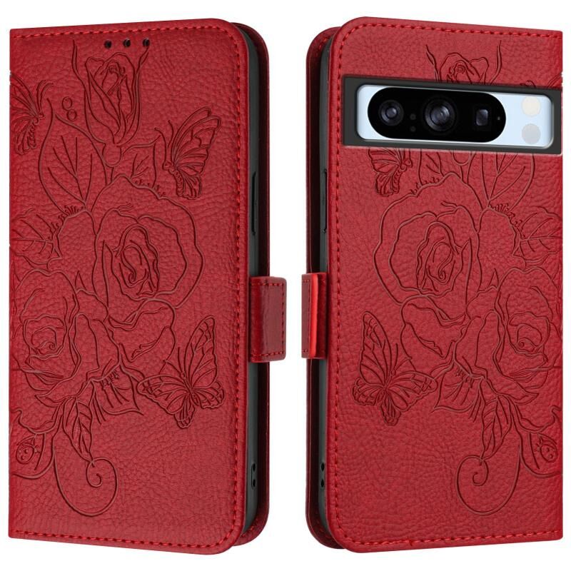 For Google Pixel 8 Pro Embossed Rose RFID Anti-theft Leather Phone Case(Red)