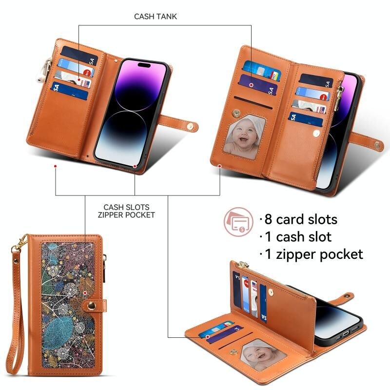 4. Πορτοφόλι με φερμουάρ: Η σούπερ υποδοχή πολλαπλών καρτών μπορεί να χωρέσει πολλαπλές κάρτες. το άνοιγμα και το κλείσιμο της θήκης μετρητών με φερμουάρ μπορεί να προστατεύσει τα μετρητά σας. Άνετο και πρακτικό για να βγείτε έξω μια τσάντα κινητού τηλεφώνου αρκετά!