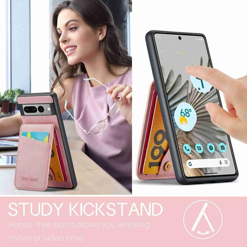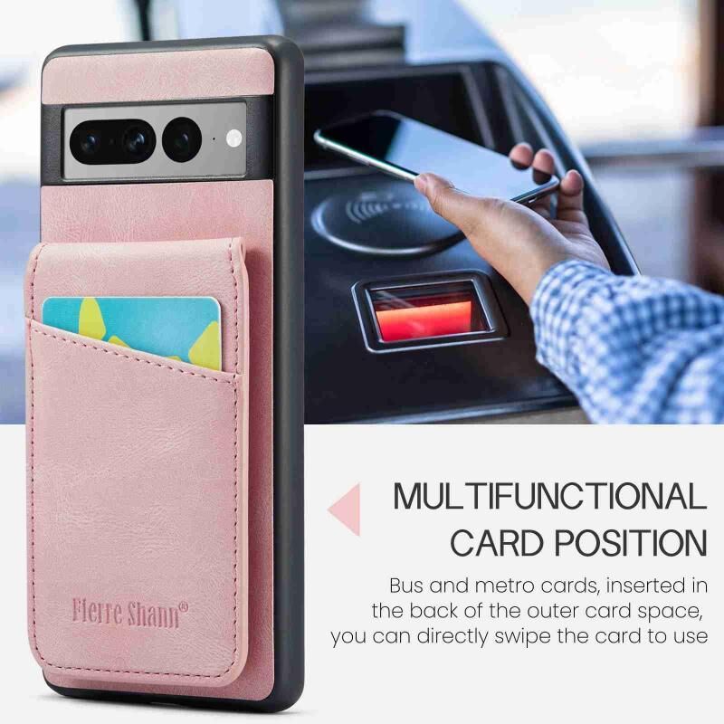 Για το Google Pixel 8 Pro Fierre Shann Crazy Horse Card Holder πίσω κάλυμμα PU υπόθεση τηλεφώνου (ροζ) (FIERRE SHANN)