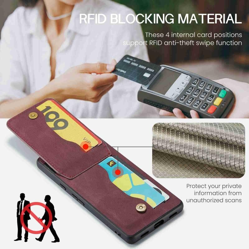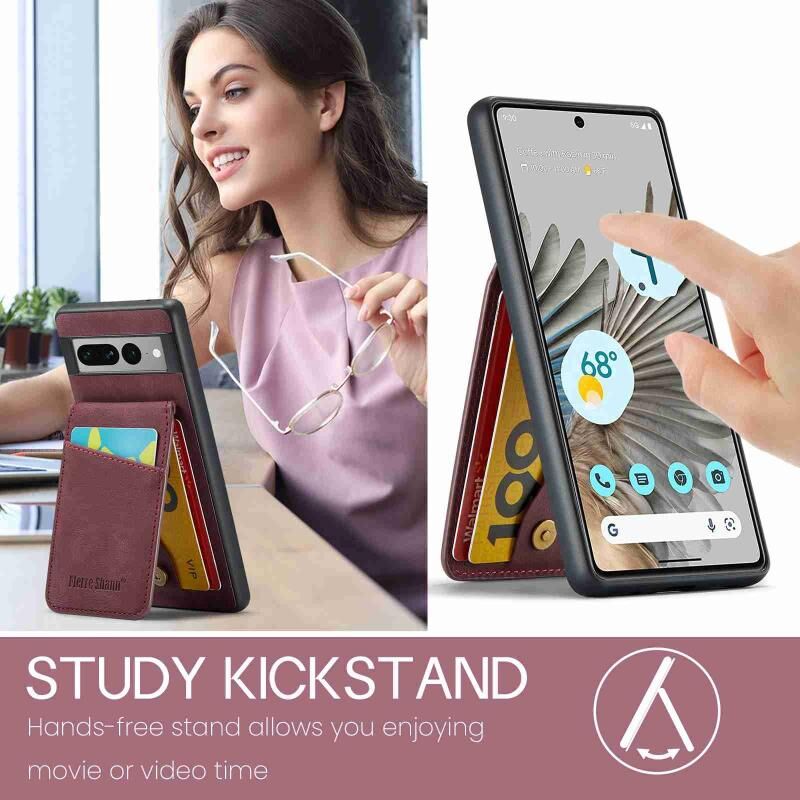 Για το Google Pixel 8 Pro Fierre Shann Crazy Horse Card Holder πίσω κάλυμμα PU υπόθεση τηλεφώνου (κόκκινο κρασί) (FIERRE SHANN)