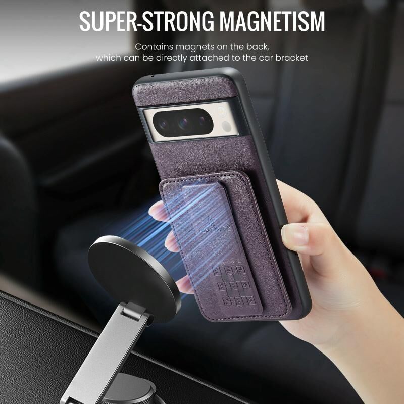 Για το Google Pixel 8 Pro Fierre Shann Oil Wax Cow Leather Card Holder Back Phone Case (Purple) (FIERRE SHANN)
