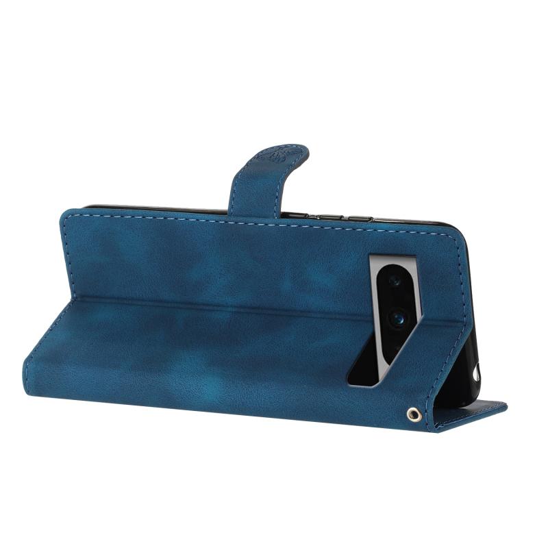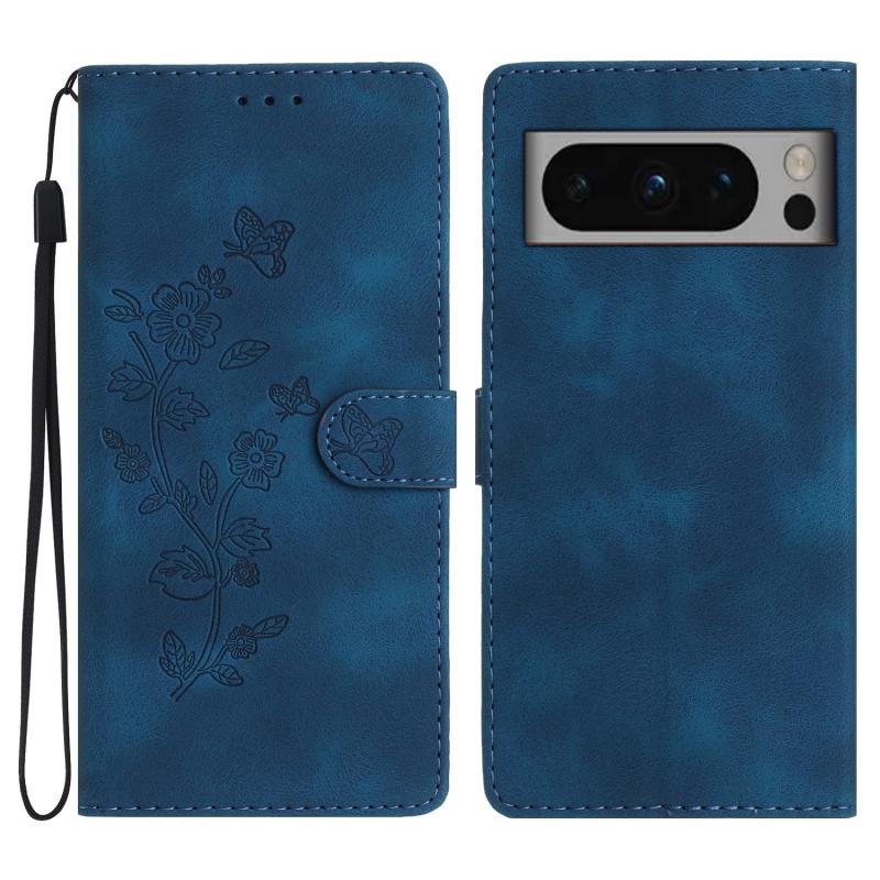Θήκη τηλεφώνου δερμάτινη με ανάγλυφο σχέδιο λουλουδιών και πεταλούδας για Google Pixel 8 Pro (Μπλε)