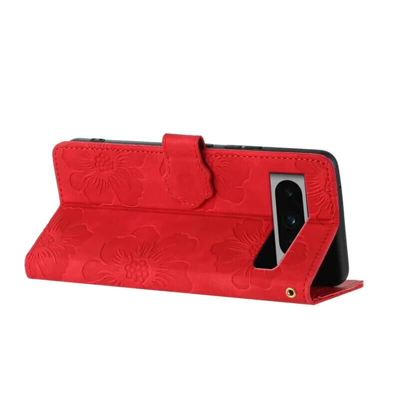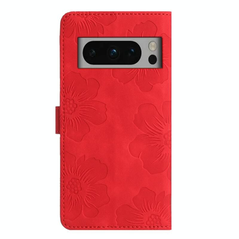 Για το Google Pixel 8 Pro λουλούδι ανάγλυφο μοτίβο δερμάτινη θήκη τηλεφώνου (κόκκινο)