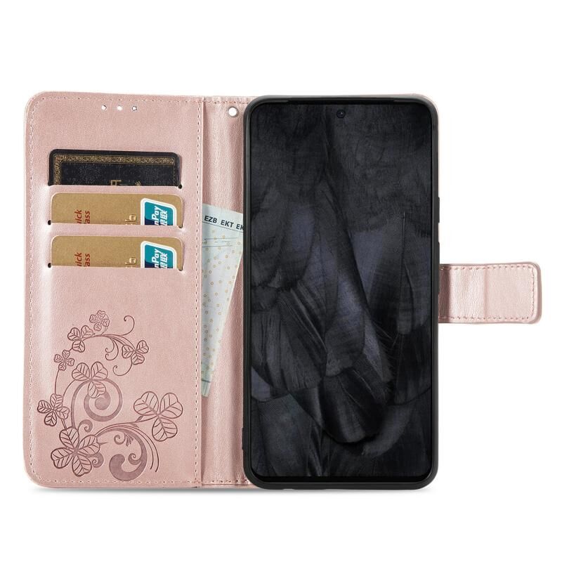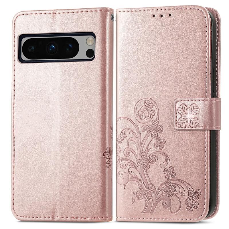 Για το Google Pixel 8 Pro τετράφυλλο κούμπωμα ανάγλυφη δερμάτινη θήκη τηλεφώνου (ροζ χρυσό)