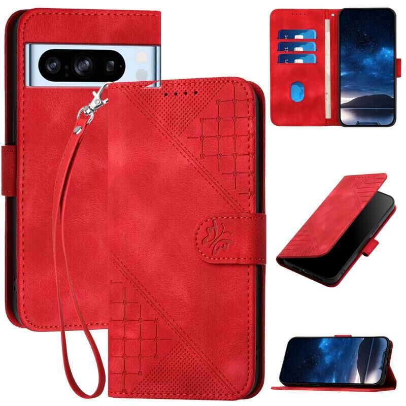 Θήκη τηλεφώνου από δέρμα με ανάγλυφο σχέδιο πεταλούδας σε πλέγμα για Google Pixel 8 Pro με κορδόνι (Σκούρο Μπλε)