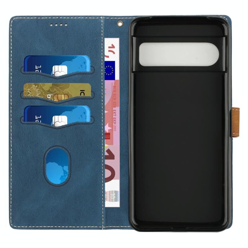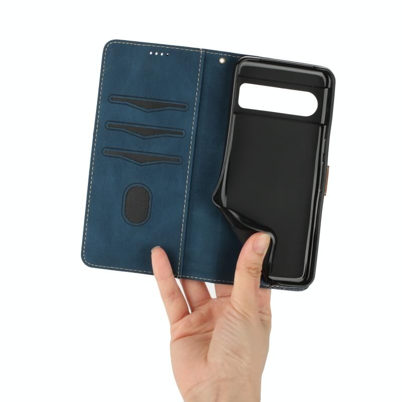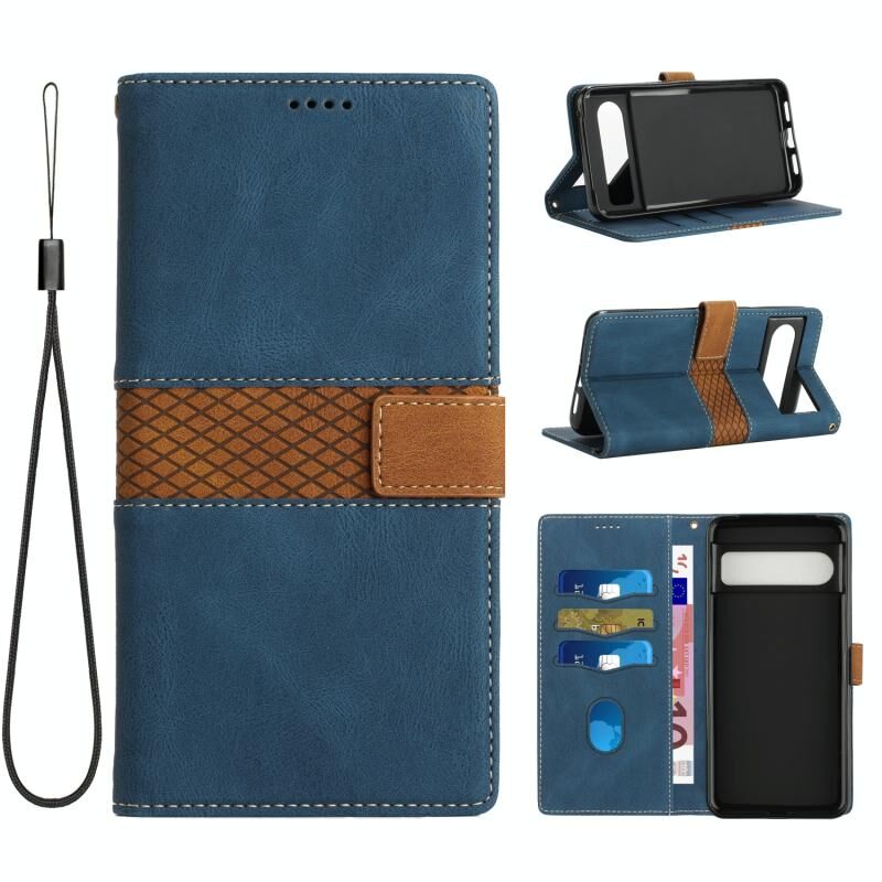 Για το Google Pixel 8 Pro Δερμάτινη θήκη τηλεφώνου με ραφή πλέγματος και κορδόνι (μπλε)