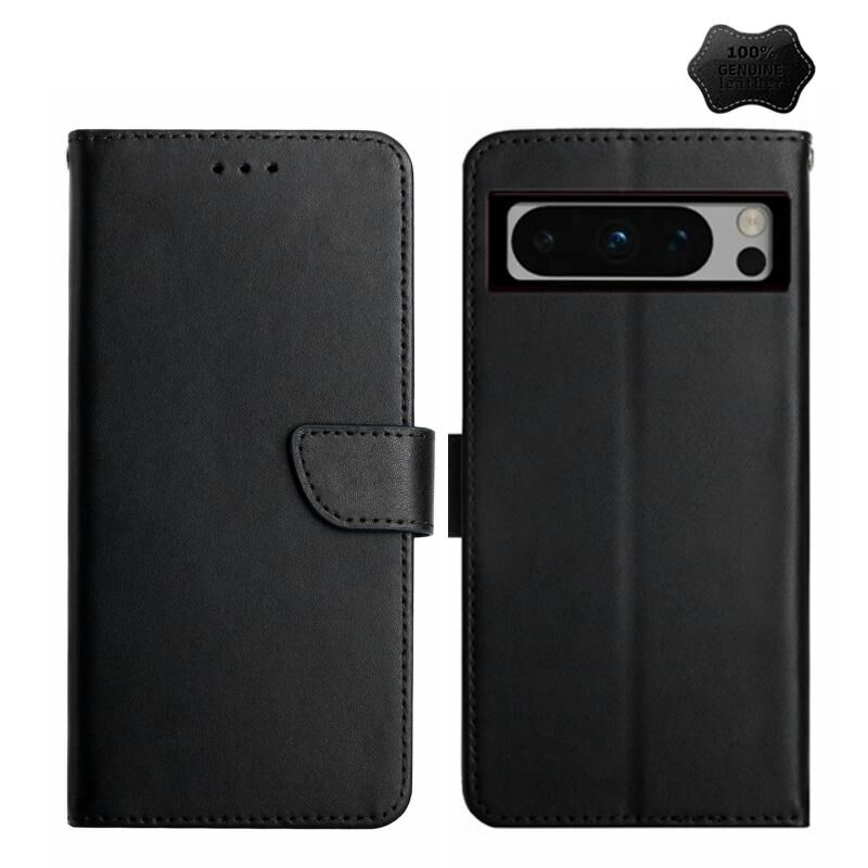 Θήκη Flip από Γνήσιο Δέρμα για Google Pixel 8 Pro HT02, Ανθεκτική στα Δακτυλικά Αποτυπώματα (Μαύρο)