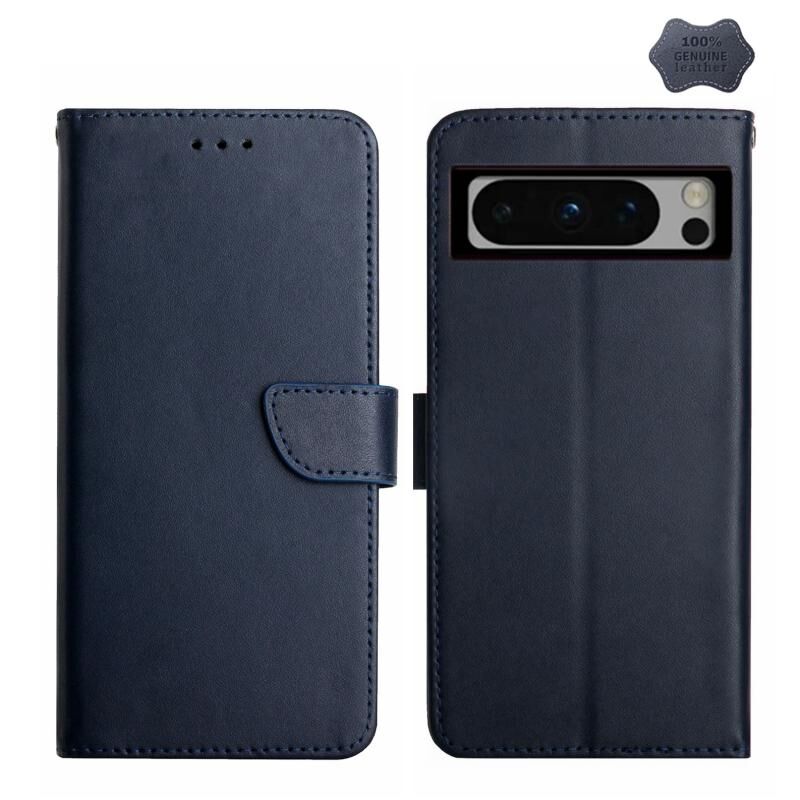 Θήκη Flip από Γνήσιο Δέρμα για Google Pixel 8 Pro HT02, Ανθεκτική στα Δακτυλικά Αποτυπώματα (Μπλε)