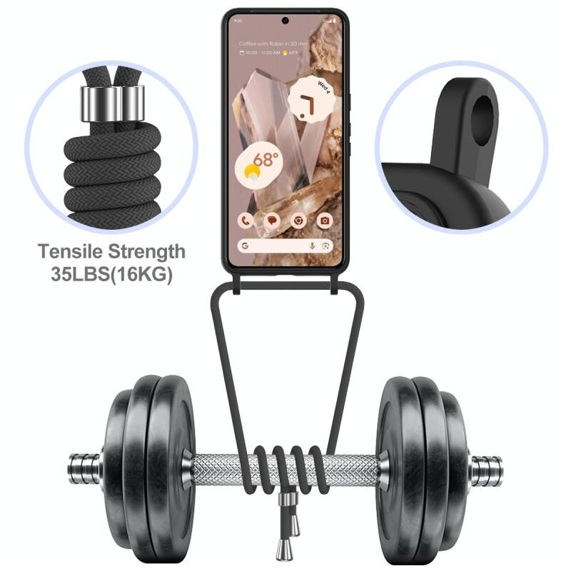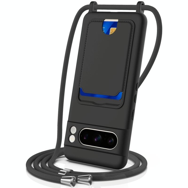 Για το Google Pixel 8 Pro Ενσωματωμένη τσάντα κάρτας Αμιγές χρώμα Υγρή θήκη τηλεφώνου σιλικόνης με κορδόνι (μαύρο)