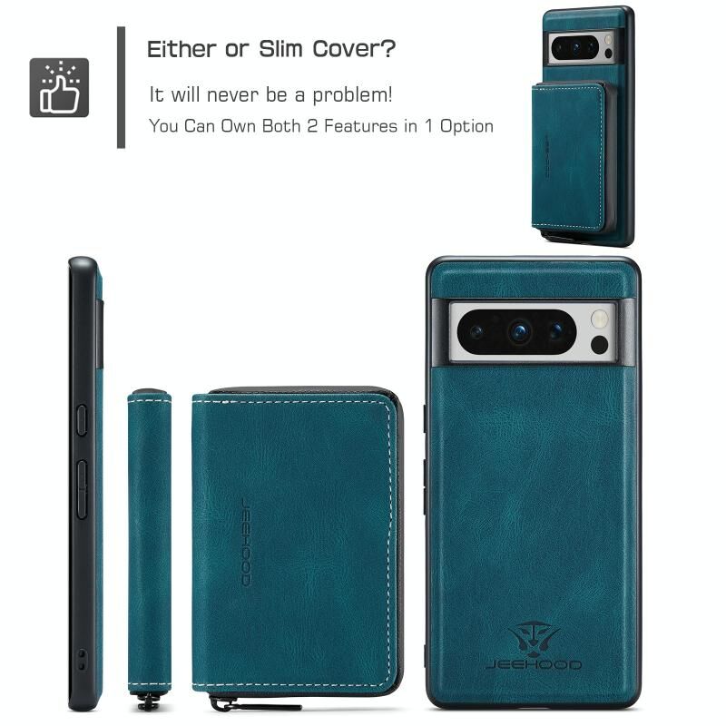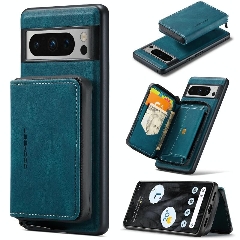 Για Google Pixel 8 Pro JEEHOOD Μαγνητικό φερμουάρ πορτοφόλι τηλέφωνο δερμάτινη θήκη (μπλε) (JEEHOOD)