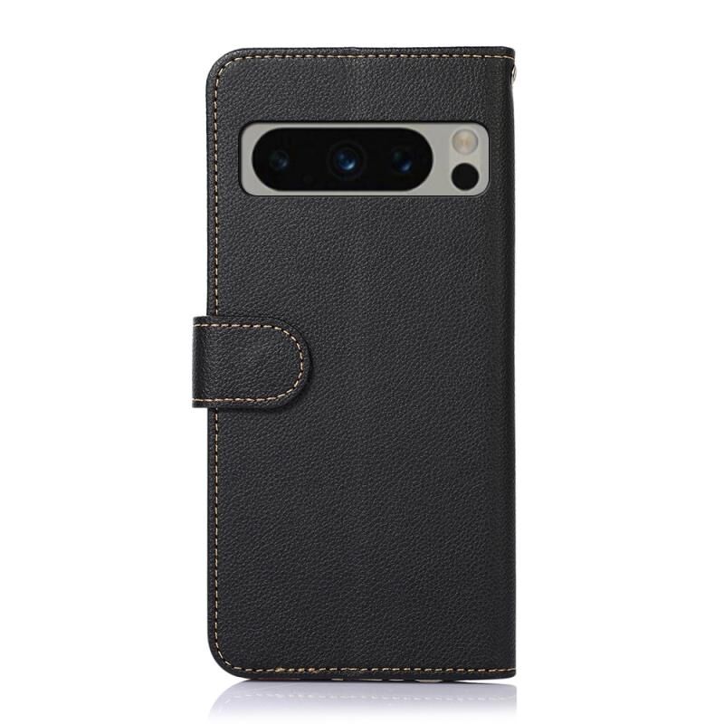 Θήκη κινητού τηλεφώνου Google Pixel 8 Pro KHAZNEH με δέρμα υφής Litchi και προστασία RFID (Μαύρο)