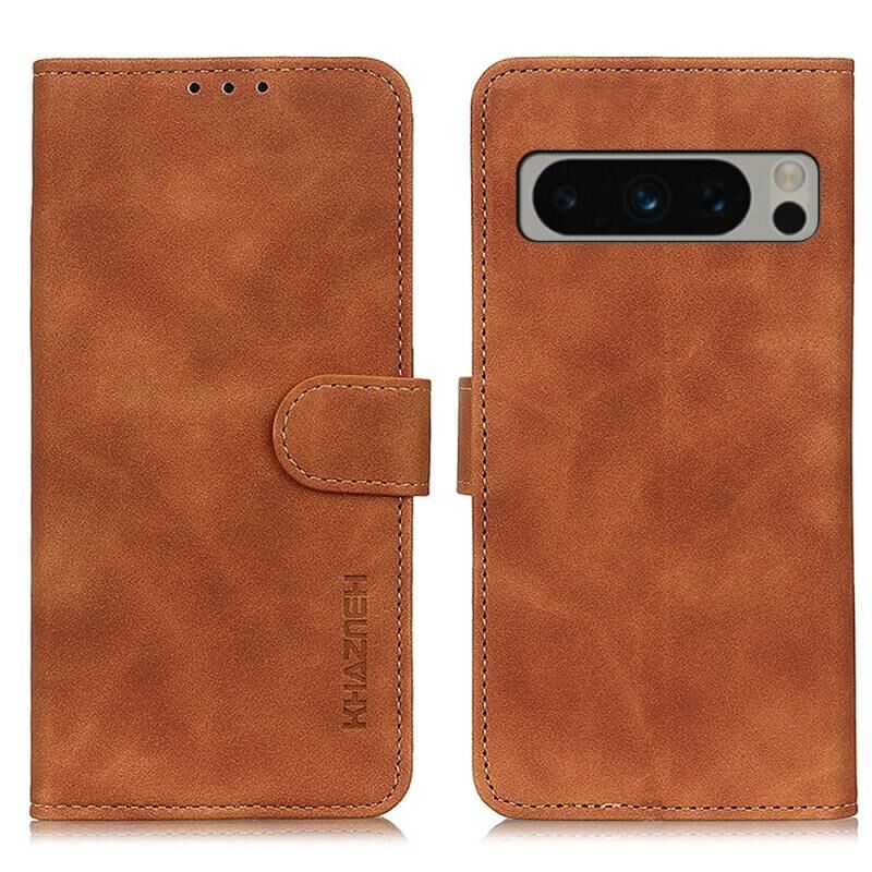 Θήκη τηλεφώνου από δέρμα με αναδιπλούμενο σχέδιο και ανάγλυφη υφή KHAZNEH για Google Pixel 8 Pro (Μαύρο)