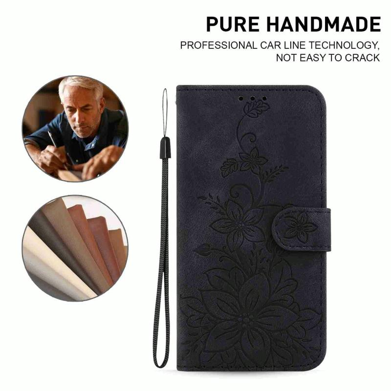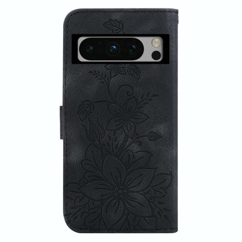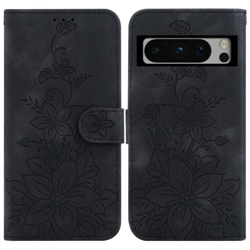 For Google Pixel 8 Pro Lily Embossed Leather Phone Case(Black)