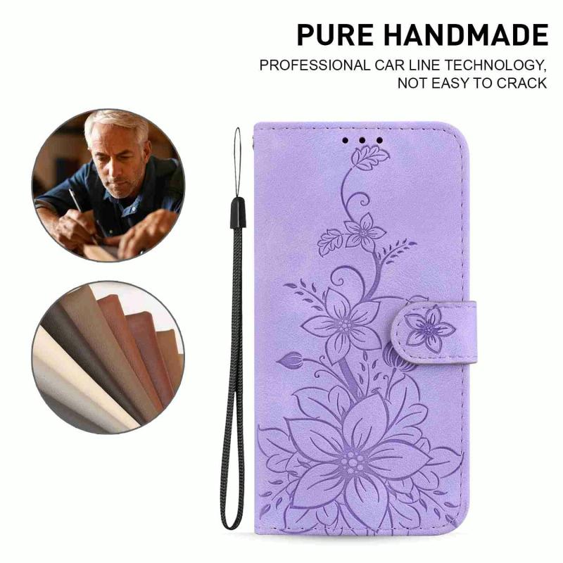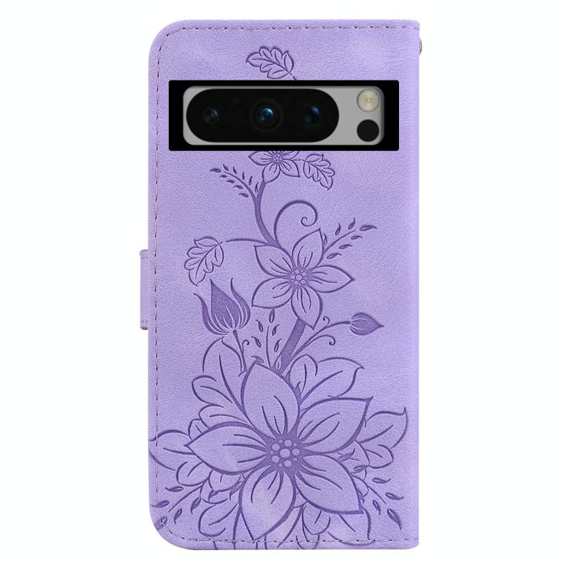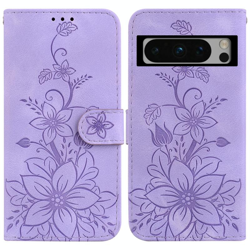 For Google Pixel 8 Pro Lily Embossed Leather Phone Case(Purple)