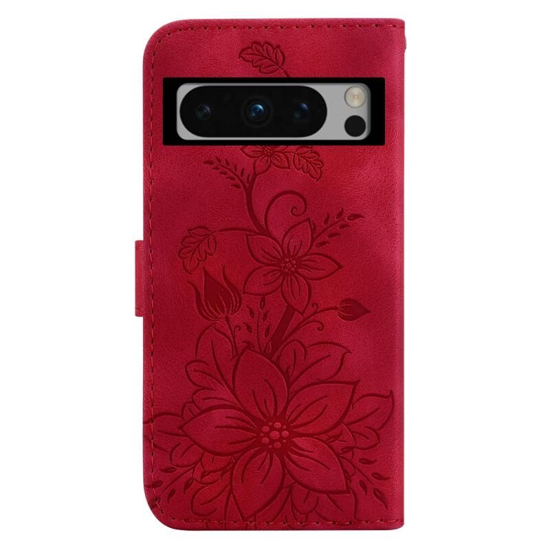 For Google Pixel 8 Pro Lily Embossed Leather Phone Case(Red)
