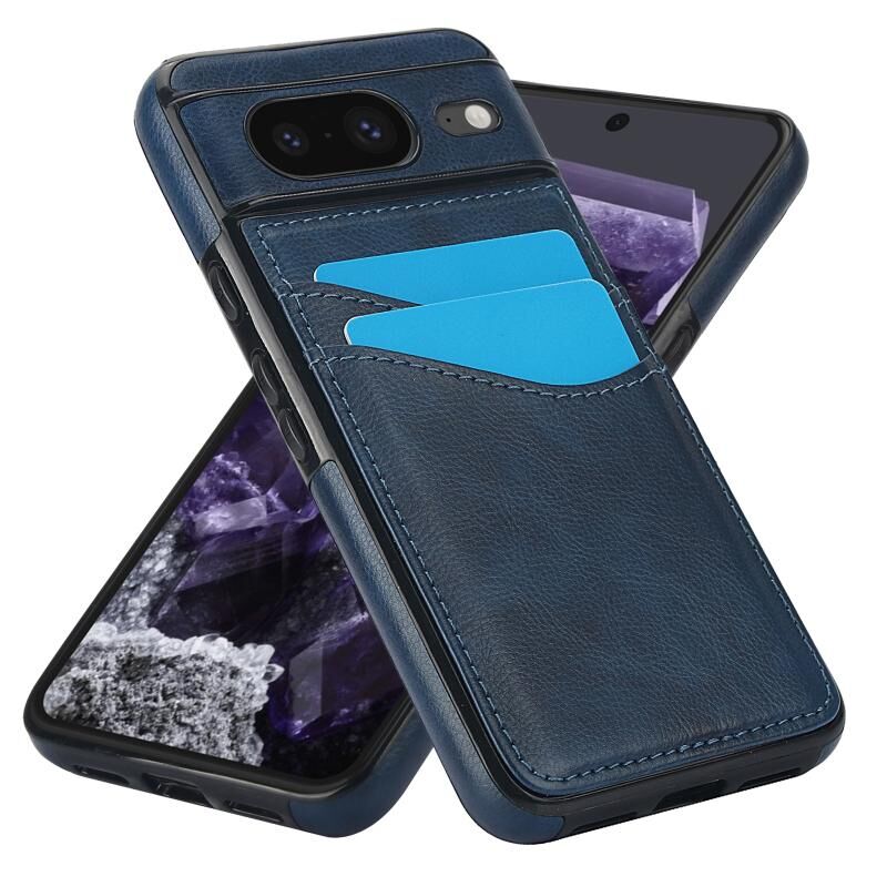 Για το Google Pixel 8 Pro Litchi δέρμα δέρματος Litchi υποδοχές καρτών υπόθεση τηλεφώνου (μπλε)