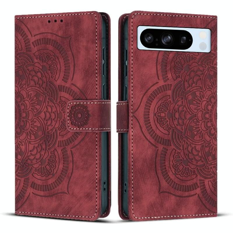 For Google Pixel 8 Pro Mandala Embossed Retro Frosted Leather Phone Case(Red)