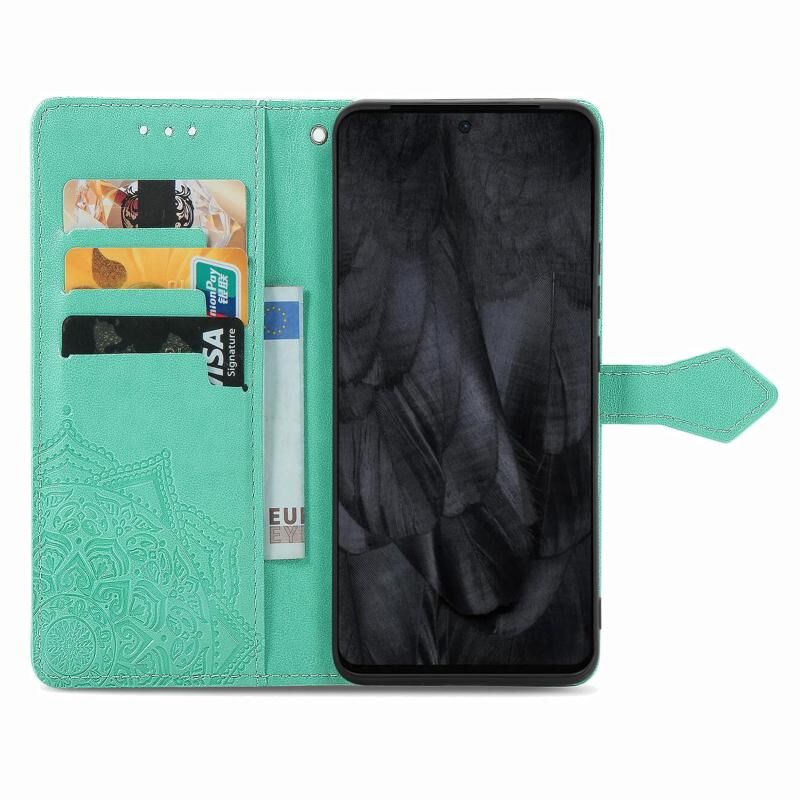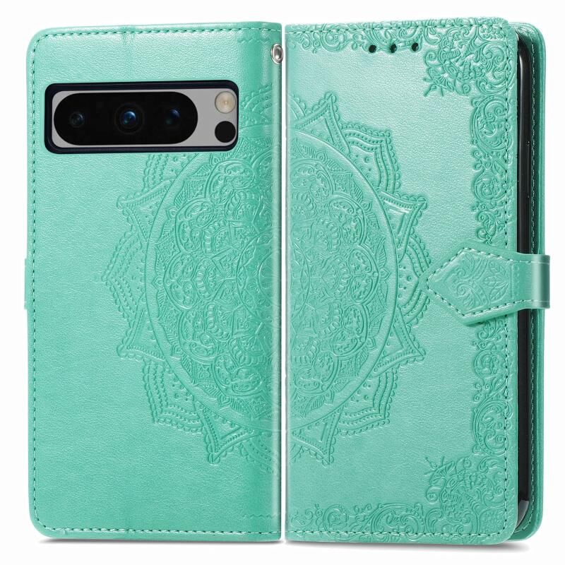 Για το Google Pixel 8 Pro Mandala λουλούδι ανάγλυφο δερμάτινη θήκη τηλεφώνου (πράσινο)