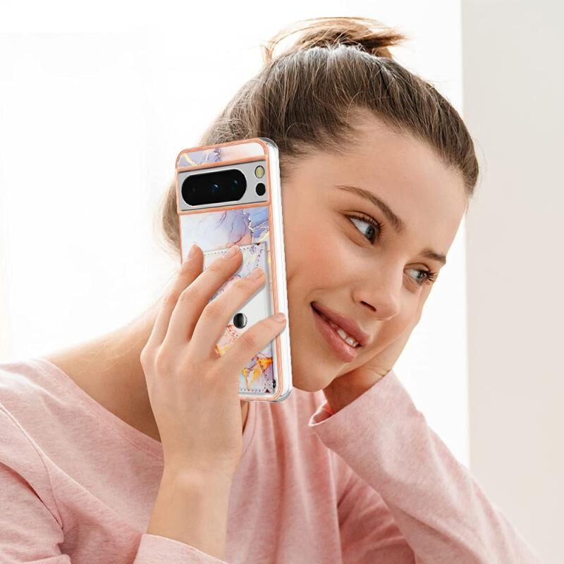 Θήκη τηλεφώνου με κάρτες IMD για Google Pixel 8 Pro, σχέδιο Μαρμάρου (Λευκό Γαλαξιακό Μάρμαρο)