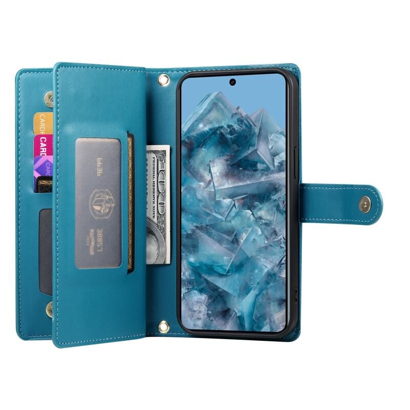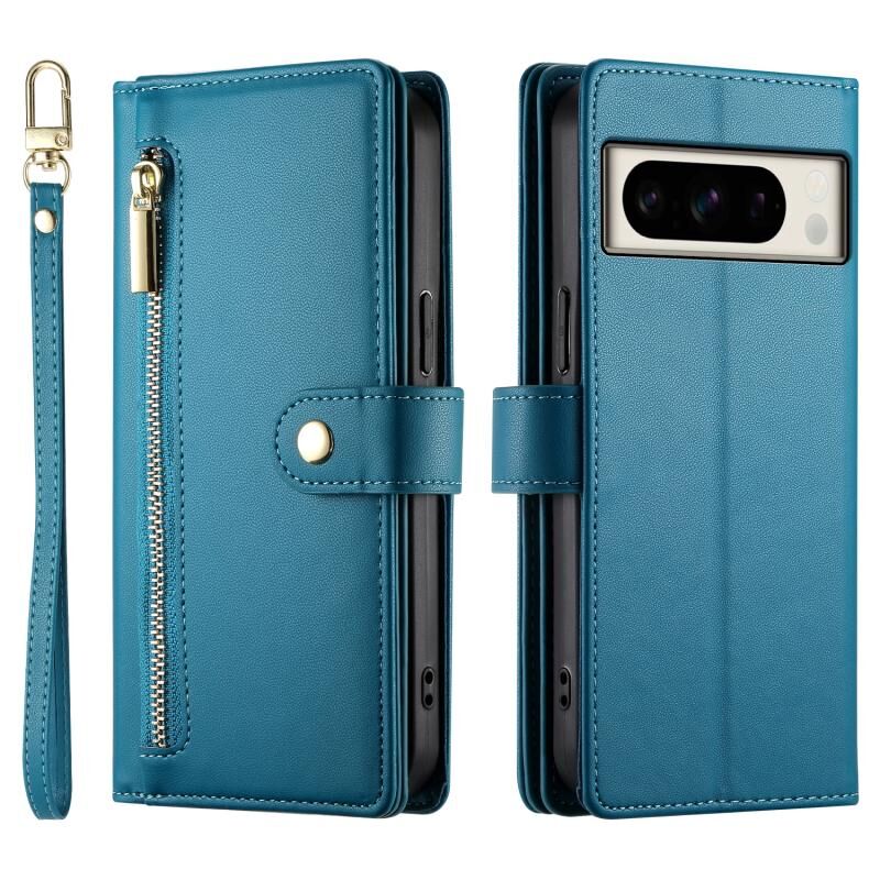 Για το Google Pixel 8 Pro Nine Card-slot φερμουάρ τσάντα πορτοφόλι δερμάτινη θήκη τηλεφώνου (μπλε)