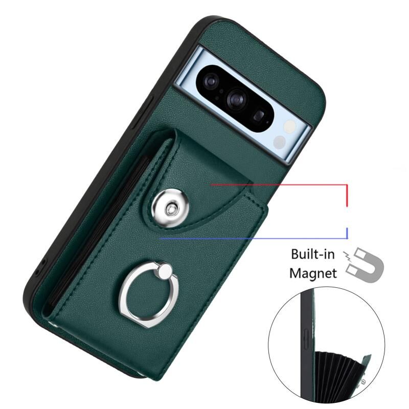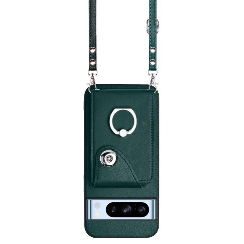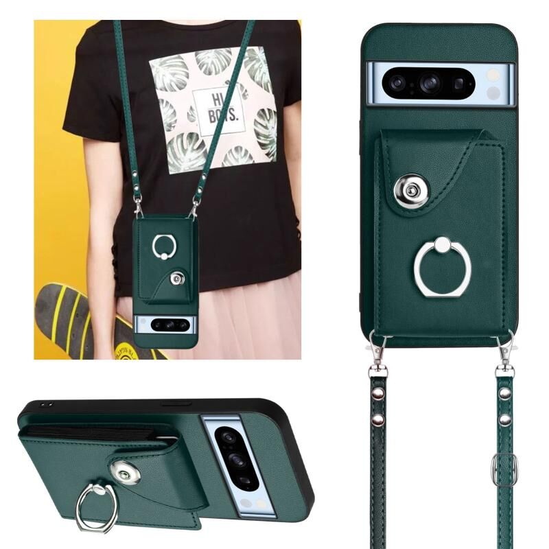 Για το Google Pixel 8 Pro Οργανική τσάντα καρτών τσάντα δαχτυλίδι κάτοχος υπόθεση τηλεφώνου με μακρύ κορδόνι (πράσινο)