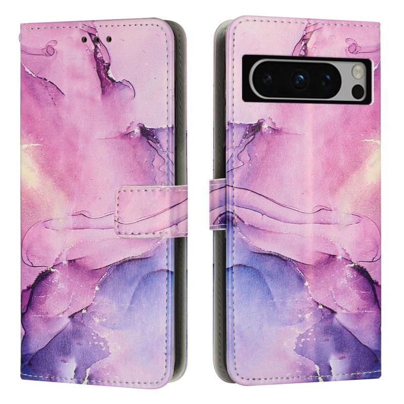 Θήκη τηλεφώνου από δέρμα με σχέδιο μαρμάρου ζωγραφισμένο για Google Pixel 8 Pro (Ροζ Μωβ)