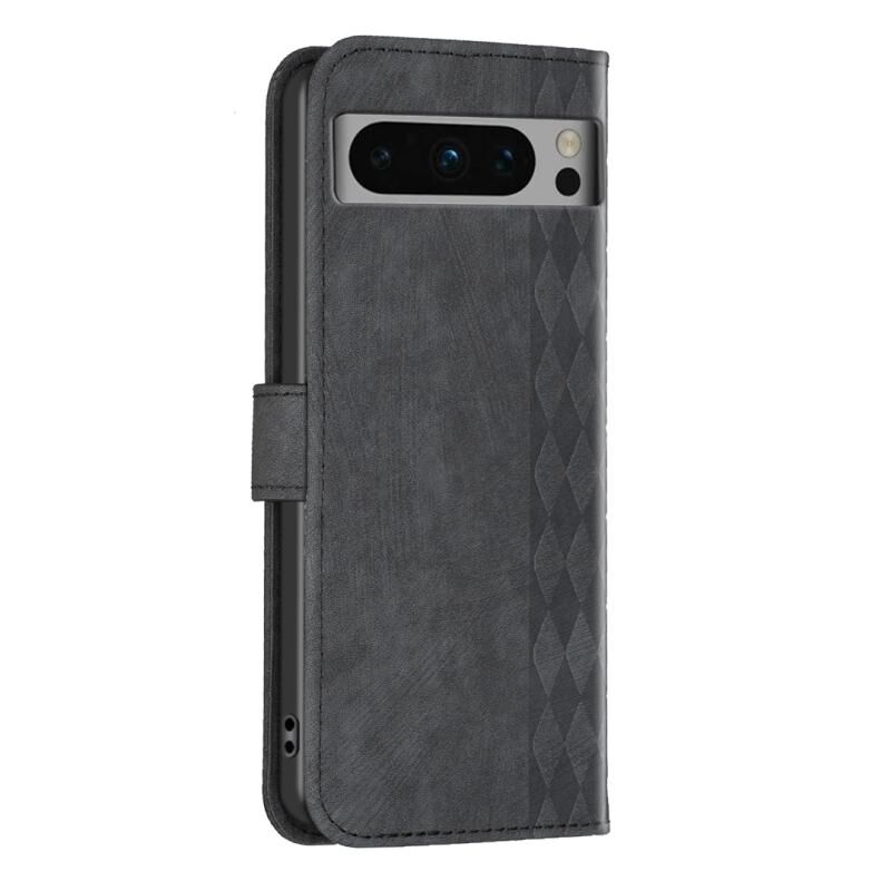 Για το Google Pixel 8 Pro καρό ανάγλυφη δερμάτινη θήκη τηλεφώνου (μαύρο)