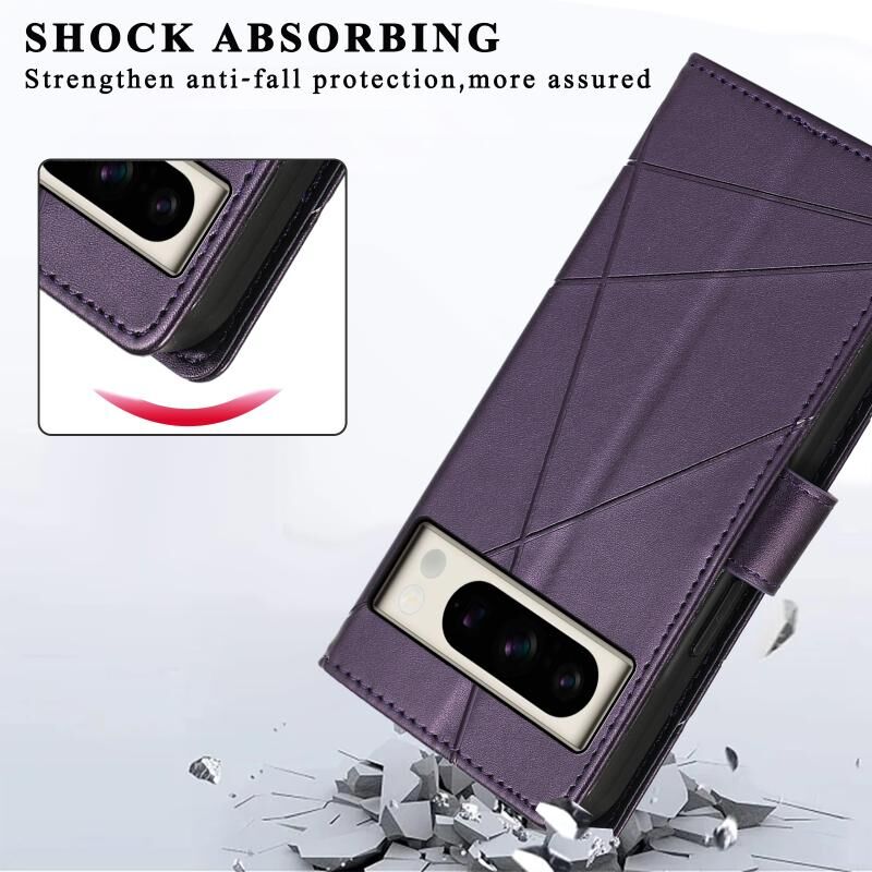 For Google Pixel 8 Pro PU Genuine Leather Texture Embossed Line Phone Case(Purple)