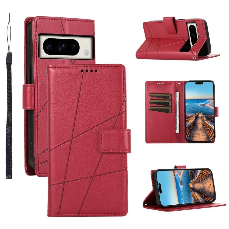For Google Pixel 8 Pro PU Genuine Leather Texture Embossed Line Phone Case(Red)