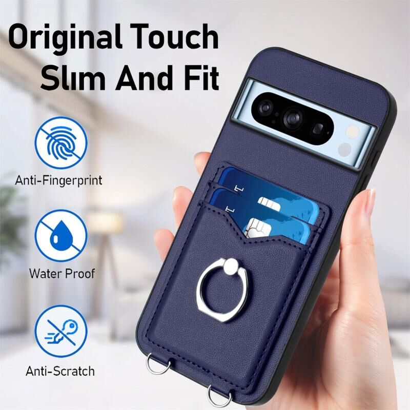 Για το Google Pixel 8 Pro R20 Crossbody Rope Ring Card Holder τηλέφωνο υπόθεση (μπλε)