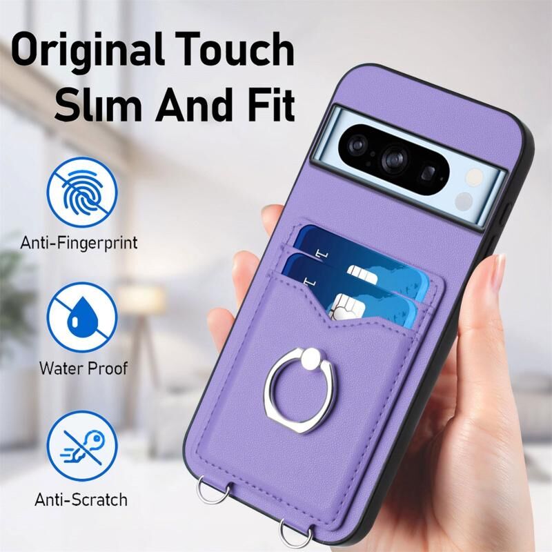 Για το Google Pixel 8 Pro R20 Crossbody Rope Ring Card Holder τηλέφωνο υπόθεση (μωβ)