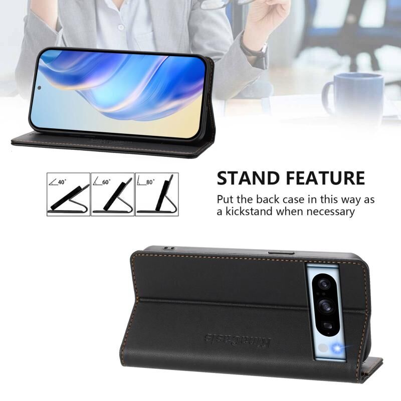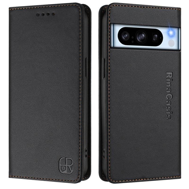 For Google Pixel 8 Pro RC01 Dual-Folded Magnetic Suction RFID Leather Phone Case(Black)