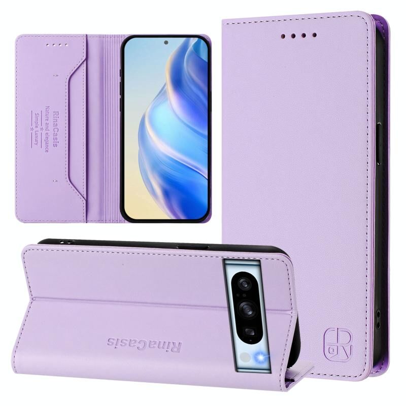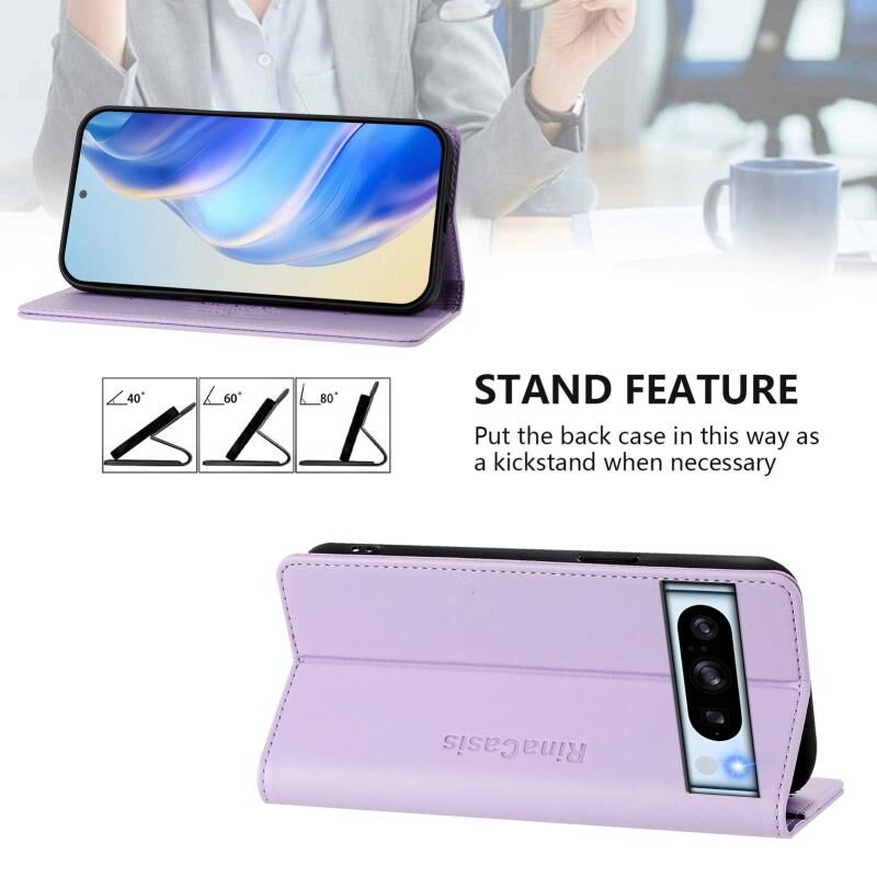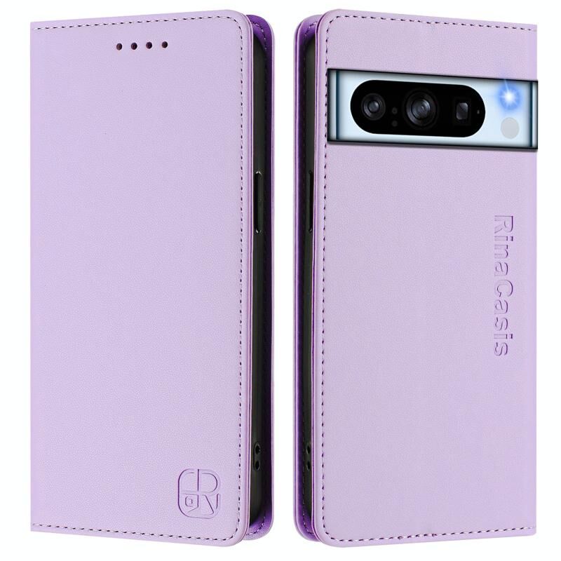For Google Pixel 8 Pro RC01 Dual-Folded Magnetic Suction RFID Leather Phone Case(Light Purple)