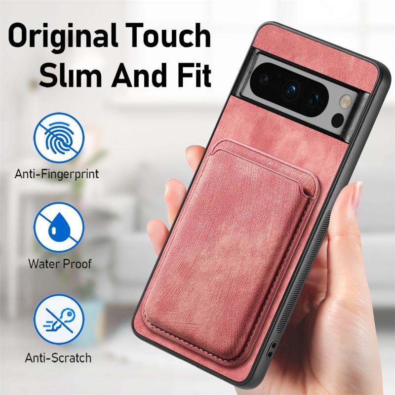 Για το Google Pixel 8 Pro Ρετρό δερμάτινη τσάντα κάρτα μαγνητική θήκη τηλεφώνου (ροζ)