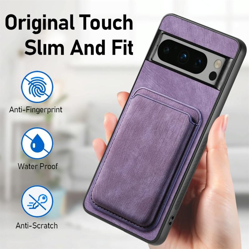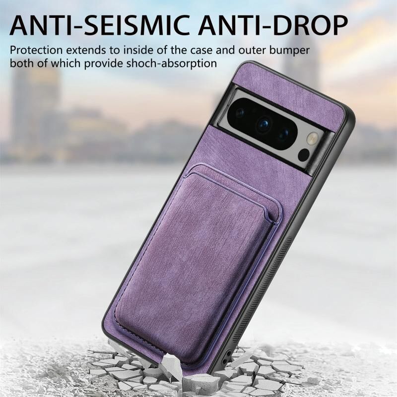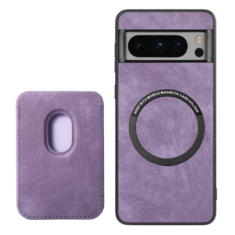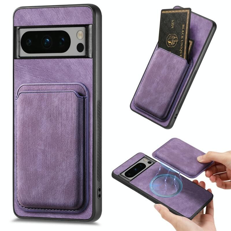 Για το Google Pixel 8 Pro Ρετρό δερμάτινη τσάντα κάρτας μαγνητική θήκη τηλεφώνου (μωβ)