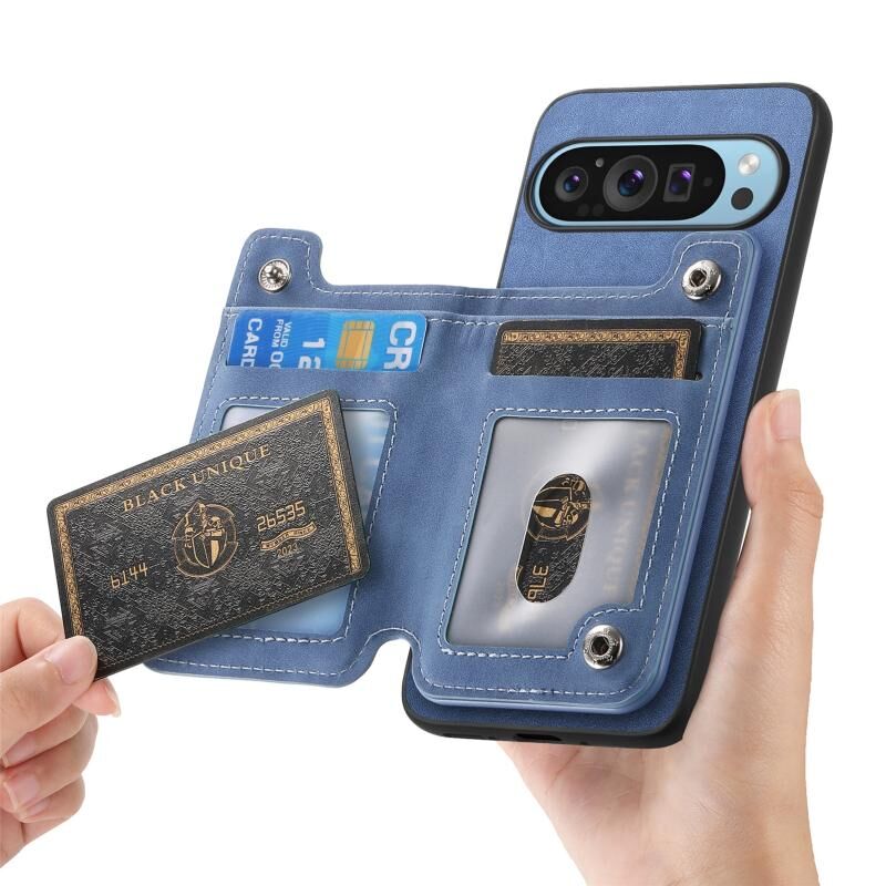 For Google Pixel 8 Pro Retro MagSafe Zipper Wallet Card Bag Back Phone Case(Blue)